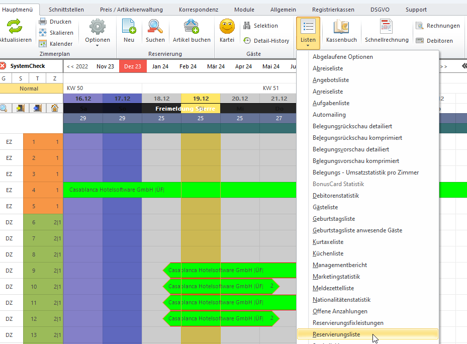 In Casablanca auf Liste/Reservierungslsite klicken.